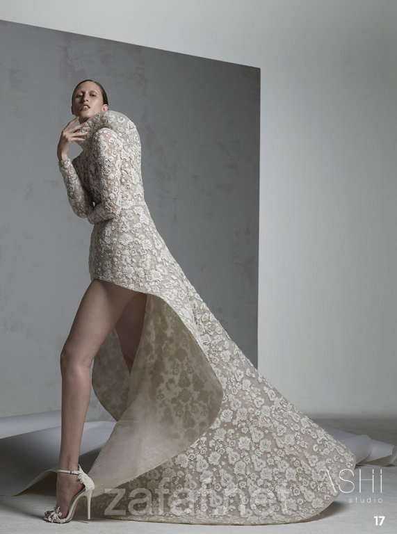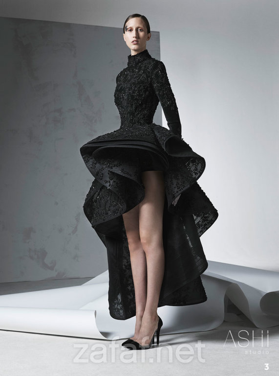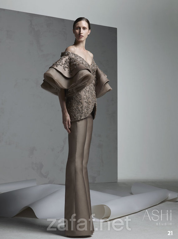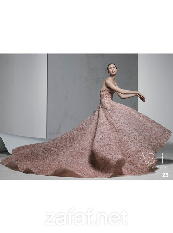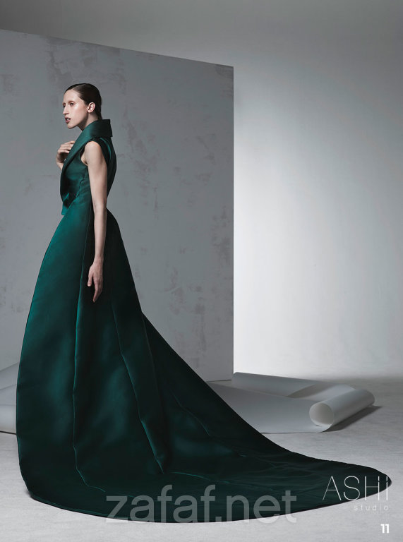 من جديد يذهلنا المصمم السعودي المبدع “محمد آشي” بمجموعة فساتين هوتكوتور لخريف وشتاء 2017، والتي تميزت بتصميماتها الراقية والعصرية، والتفاصيل الفخمة والدقة في في عملها. وضمت مجموعة أزيائه العديد من تصاميم الهوت كوتور الأنيقة، وغلب عليها طابع الألوان الهادئة كالأبيض اللؤلؤي والكريمي الناعم، بالإضافة إلى اللون الأسود الذي يمتاز بالفخامة والرقي واللون الأخضر الغامق. وكما استخدمت الأقمشة من الحرير والكريب والتل مظهرةً الفساتين بفخامة وبرزت بقوة في تصاميم “محمد آشي” الفساتين المنتفخة ذات التموجات الناعمة والهندسية بشكل فخم، كما لفت إعجاب الجميع ظهور الفساتين ذات المقدمة القصيرة بشكل منتفخ وثابت، التي تعيدك إلى القرن الثامن عشر. وبالتأكيد ستحبين التفاصيل البارزة التي تزين القطع كالتطريزات، والنقوش التي ترسلك إلى عالم القصص الخيالية والأميرات الحسناوات مع لمسات شرقية.