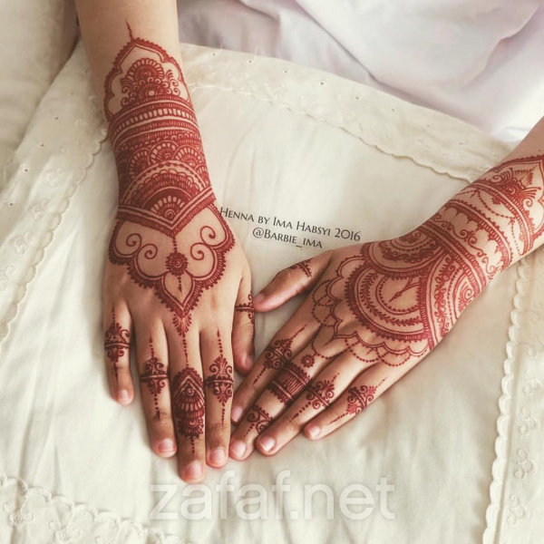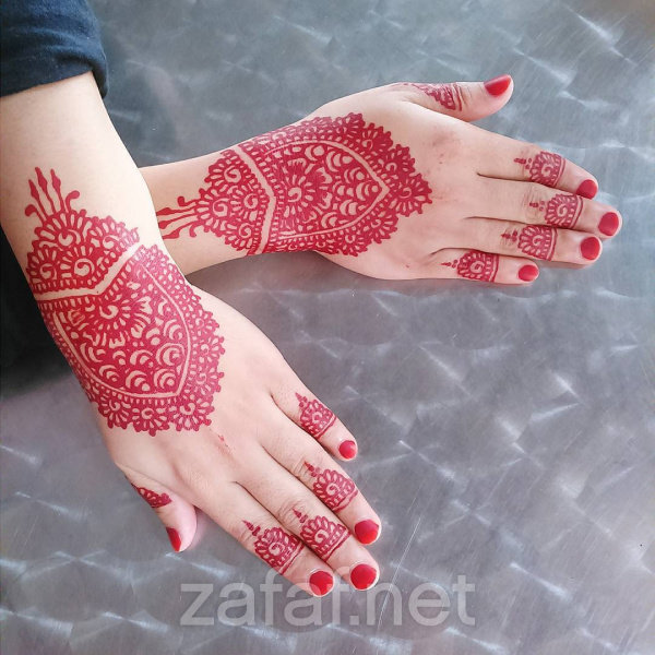 الحنا الحمراء هي أخر صرعات نقشات الحنة, وتعطي العروس إطلالة مميزة وساحرة وخصوصاً عند اختيار درجة اللون الاحمر المناسبة لبشرة العروس ودرجة لون فستان الزفاف. نحن هنا جمعنا لك أجمل صور نقش حناء احمر تصفحي الالبوم واختاري نقش حنا يعجبك لتحظي بإطلالة مميزة يوم الزفاف.