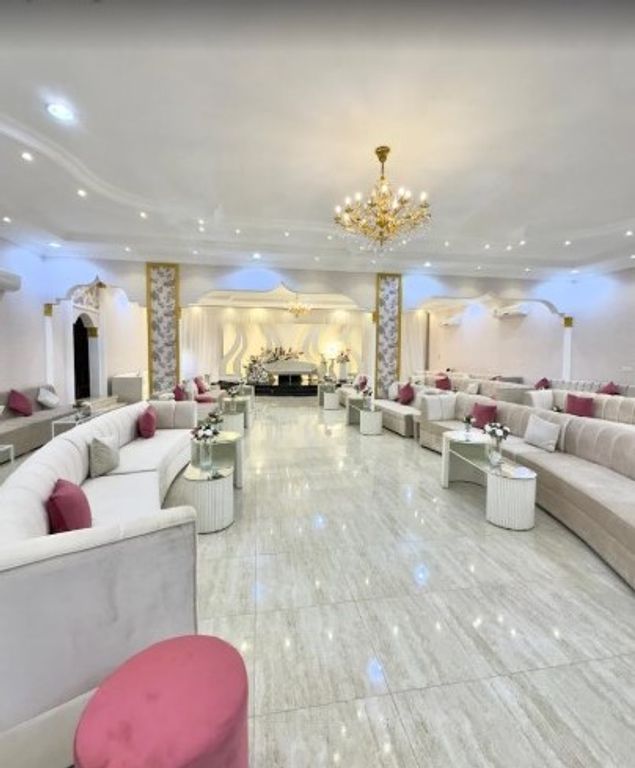تضم القاعة قسمين مستقلين: قسم النساء: يتسع لـ 150 ضيفة، ومجهز بالكنب والديكورات العصرية. قسم الرجال: سعته 100 شخص، ومجهز بالكراسي الفاخرة التصميم ومرتب بالشكل الذي يناسب احتفالك. كما تتوفر صالة لتقديم الطعام في كلا القسمين، وتم تجهيزها بطريقة مثالية لخدمة الحفل وتنظيم الضيافة.