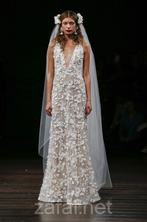 أبدع المصمم الهندي نعيم خان Naeem Khan في مجموعته الجديدة لفساتين زفاف خريف عام 2017 والتي قام فيها بالمزج بين الأسلوب الشرقي والغربي، بطريقة متطورة ومواكبة للموضة حيث حوت هذه المجموعة الفساتين المزينة بوشاح والتطريزات الملونة المزينة بالورود، الأقمشة والتفاصيل الشفافة، والتصاميم الناعمة. كما اهتم نعيم خان بهذه المجموعة بالإكسسوارات ووالطرحات، فقد قدم الطرحة الطويلة التي زينت بالورود على الجانبين، كما قدم الأقراط الطويلة للعروس التي تبحث عن الأناقة والجاذبية.