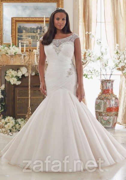 ذا كنتِ عروس ممتلئة وتبحثين عن فستان زفاف مميز يليق بك هنا ستعثرين على مرادك, زفاف.نت جمعت لك أجمل موديلات فساتين زفاف للسمينات لتختاري منها ما يليق بك وبشخصيتك. - واذا كنتِ تبحثين عن فستان الزفاف المثالي للعروس الممتلئة إليك أهم النصائح التي ستساعدك للوصول إلى فستان زفاف مثالي .. - ابتعدي عن فساتين الزفاف الكشكش أو الموديل المنفوش لكي لا تعطكي شكلك المزيد من الحجم, كما يجب عليكي الابتعاد عن الفساتين المصممة من اقمشة الساتان والدانتيل المطاطي, وعليكي باختيار قماش التفتا هو القماش المثالي للعروس السمينة الي سيمنحك شكل جسم مميز. - اختاري فستان زفاف بقبة واسعة للتركيز على وجهك وبقصة ظهر مفتوحة لتبرزي جمالك, وإذا اردتِ التركيز على الأرداف والفخذين لتشتيت الانتباه عن مناطق أخرى ففستان زفاف قصة السمكة هو أمثل خيار للعروس الممتلئة. - يمكنك لتحويل الانظار عن منطقة البطن اختيار فستان بكتف واحد أو بقصة رقبة مميزة أو مطرزة أو ارتداء عقد كبير بأحجار متلألئة , ولجسم أكثر تناسقاً عليكي التفكير باختيار فستان زفاف كم طويل ويفضل فستان زفاف باكمام من الدانتيل. - اختاري فستان زفاف بخصر ضيق ليبرز تضاريس جسمك, وعليكي باللجوء إلى الطرحة الطويلة التي ستمنح وجهك وجسمك المزيد من الطول.
