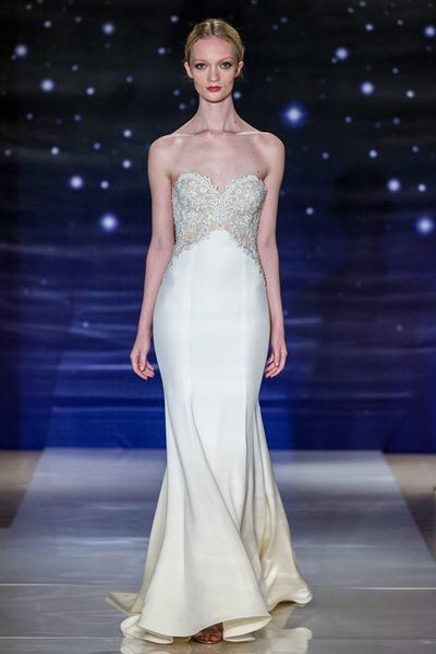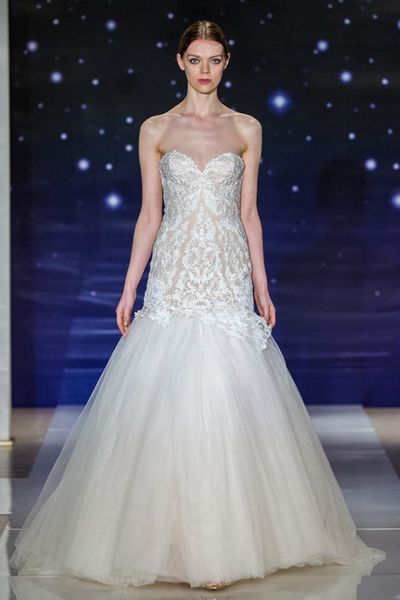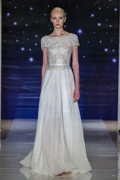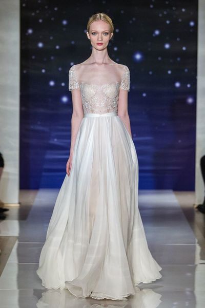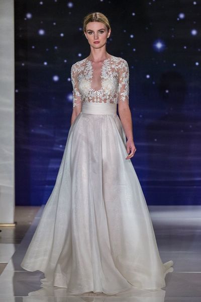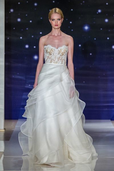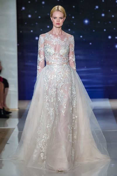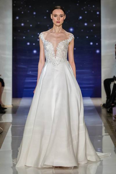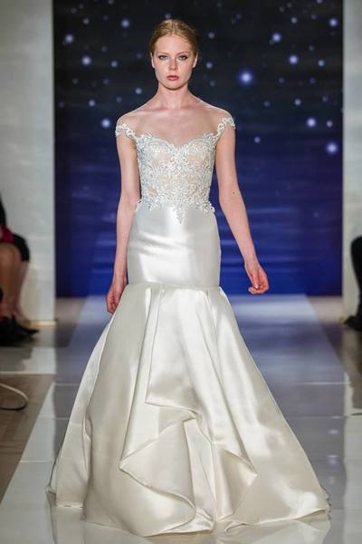 احتوت مجموعة <strong>فساتين زفاف ريم عكرا </strong> على التصاميم المحددة لجسد المرأة كقصة ذيل السمكة، ولكنها لم تخلو أيضا من الموديلات المنفوشة. قدمت ريم عكرا باقة متنوعة من الفساتين منها ما هو بأكمام طويلة وبنصف كم وأخرى بدون حمالات لتناسب أذواق كل النساء الذين يبحثون عن التميز دائما. كما استخدمت ريم عكرا في تصاميم الفساتين أقمشة الحرير والكريب والدانتيل ومزجت بينهم بطرق فنية متنوعة ترسم جسد العروس بنعومة وأناقة.