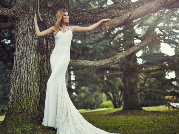 فستان زفاف من برونوفياس بقصة ذيل السمكة يناسب جميع اشكال السجم عذا جسم الساعة الرمليةممتاز مع تسريحة شعر رفع بسيطة .