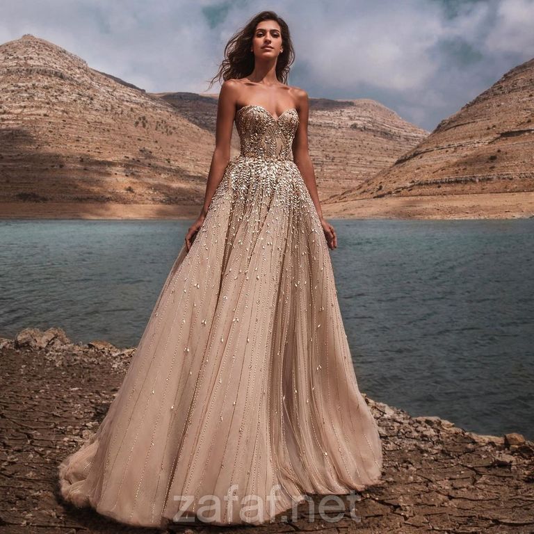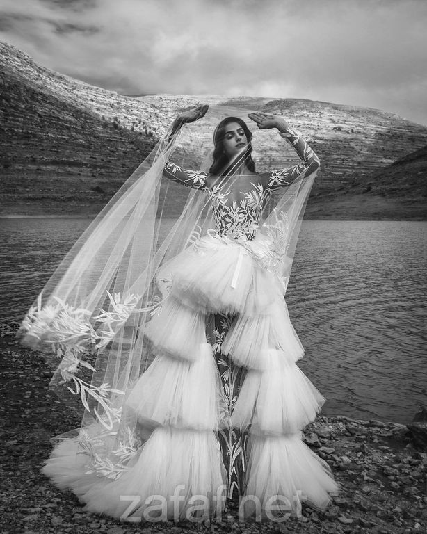 كما أن درجة لون النيود مع بساطة الطرحة وأناقتها تجعل هذا الفستان من الفساتين التي ستبقى في الذاكرة طويلاً.
