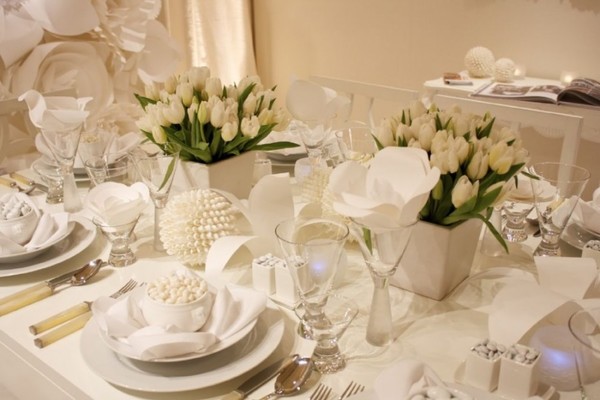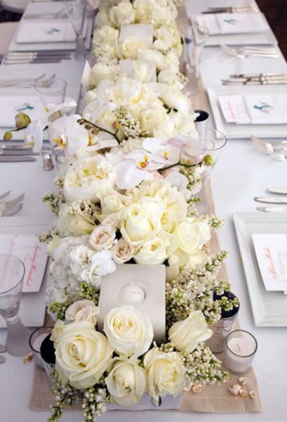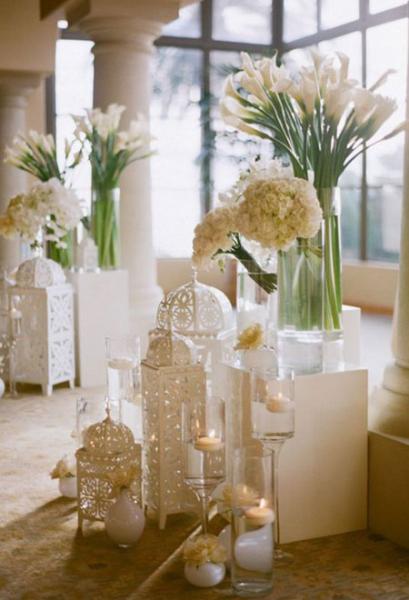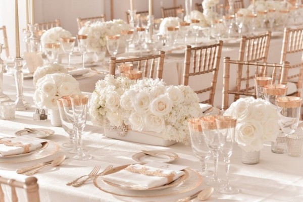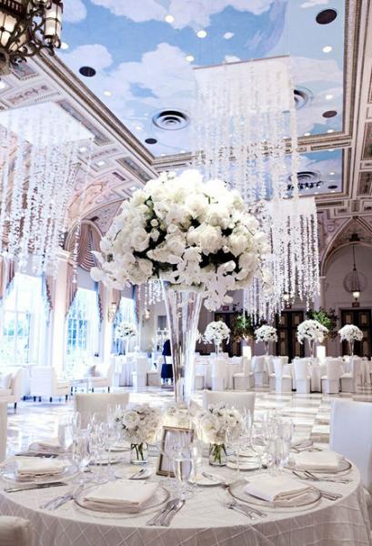 الأبيض هو لون النقاء والأناقة والترف .. وهو اللون المفضل لحفلات الزفاف لانه يعطي الأحساس بالثقة والأمان والجمال والورود البيضاء تدل على النقاء والصفاء بين العروسين والأبيض هو لون الأخلاص فالأبيض يعكس بنقاوته الأناقة والترف، وهو اللون المفضل عند الكثير من العرائس اللواتي يخططن لحفلات زفافهن، لأنه يوحي بالنظافة والترتيب، كما بالثقة والأمانة والجمال. وهو لون مميز سيلفت أنظار ضيوفك ويبرز تفاصيل حفل زفافك كما يمكنك مزج اللون الأبيض مع بعض الألوان الفاتحة لتضفي لمسة أنيقة فخمة كالبيج أو الأصفر الفاتح كي لاتسيطر على قوة الأبيض